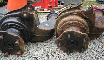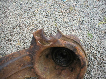 The picture to the right here shows how the elbow can crack and fracture around the bush fixing. This particular one was discovered as we were swapping the bushes from metallastic to polyurethane on a car which was considered to be show quality, so you never know. With this one the holes were all welded up before reassembly.